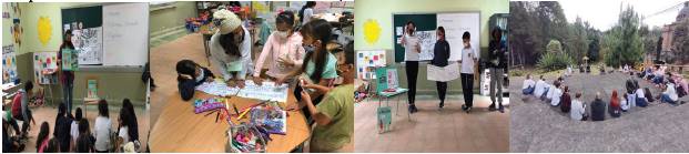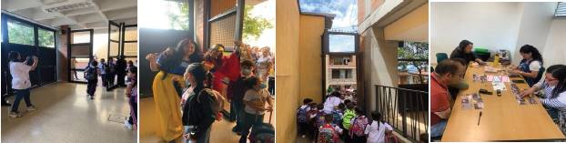 Estudiante 2: Aquí, los profes nos reciben en la puerta, entramos en fila y por orden de grados, nos dan comida en el restaurante; hay días donde venimos de ropa y jugamos con los profes, pero para disfrutar de las actividades hay que portarnos bien.