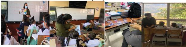 Estudiante 3: Vamos a la biblioteca a leer y estudiar, preparamos obras para los actos cívicos y las formaciones donde rezamos, cantamos, nos dan avisos importantes o nos dicen cómo nos estamos manejando. En las clases nos enseñan a pensar en otras carreras para cuando estemos grandes, por ejemplo, ser un ingeniero o un arquitecto. (Comunicación personal, 2022, julio 21)