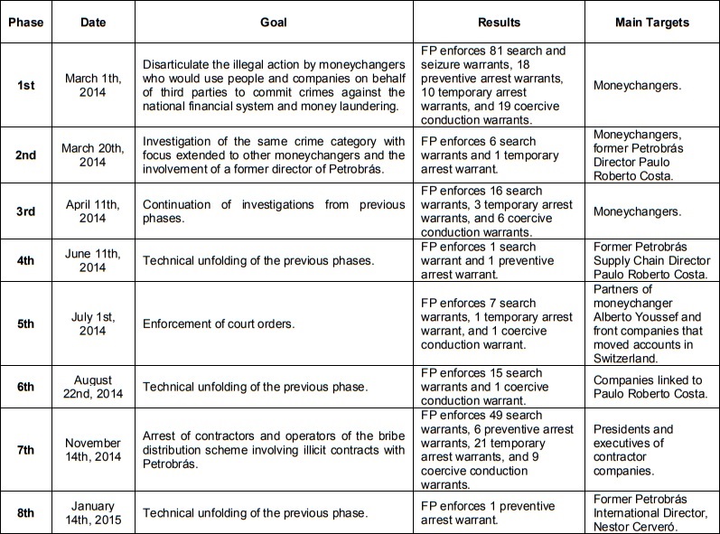 Polícia Federal. Fases da Operação Lava Jato. Recuperado em 30 julho, 2016, em http://www.pf.gov.br/imprensa/lava-jato/fases-da-operacao-lava-jato-1