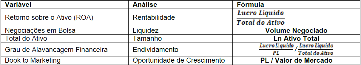 Como variáveis de controle, optou-se por indicadores com base em informações contábeis, relevantes para os acionistas, investidores, e para o mercado (Kulmar & Sopariwala, 1992; Hitt, Hoskisson, Johnson e Moesel, 1996; Gompers, Ishii, & Metrick, 2003). São eles: