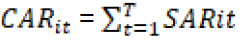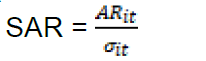 Para padronizar os retornos anormais dos diferentes ativos, divide-se o retorno em excesso da ação por seu desvio padrão, gerando assim um coeficiente de retorno anormal (SAR), conforme apresentado na equação (5) (McWilliams & Siegel, 1997):