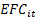 = eficiência da empresa i no ano t;
