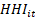 = índice de Herfindahl-Hirschman da empresa i no ano t;