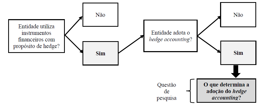 Para o alcance do propósito de identificar quais são os determinantes que levam as instituições financeiras a adotarem o hedge accounting e quais são suas principais características, foi observado o fluxo destacado na Figura 1.