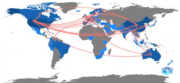 A próxima Figura 7 apresenta a produção científica mundial sobre o tema InnovationExploitation e InnovationExploration, sendo que conforme a tonalidade se torna mais escura tem-se o aumento do índice de publicações sobre este tema. Contudo, pode-se perceber que o tema está bastante difundido e possui relevância significativa nos Estados Unidos da América, Brasil, em países da Oceania, e em alguns países da Europa, sendo estes considerados os países que desenvolvem maior número de pesquisas sobre inovação radical e incremental.