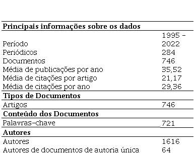 Pode-se verificar na Tabela 3 as informações gerais obtidas na pesquisa, considerando as 746 pesquisas envolvendo o tema inovação incremental e radical, que foram publicadas entre 1995 e 2022.