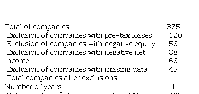 Using the COMDINHEIRO Platform, the companies that make up the samples were selected for the tests, already excluding the data capture of the financial companies, which is possible when using the COMDINHEIRO Platform. Companies with losses before taxes, companies with negative equity, companies with negative net income, and companies without data for the variables that will form the short and balanced panel were eliminated. Table 1 shows the process of formation and composition of the sample.