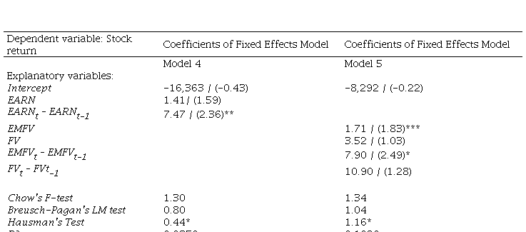 The second analysis section involves the application of value-relevance models. The basic specification used to assess the relevance of accounting information is based on Easton (1999)[3]: