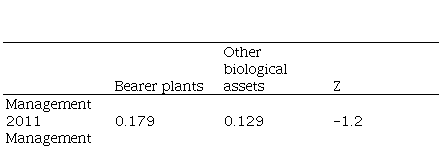The second comparison was made between companies holding bearer plants and companies holding other biological assets. Therefore, the same test was used. The results were used to assess research hypothesis 6.