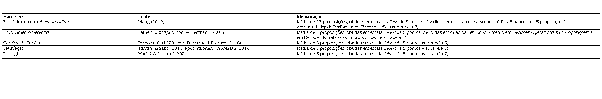 As variáveis utilizadas no questionário estão descritas na Figura 1, assim como sua fonte, indicando sua prévia utilização por outros pesquisadores.