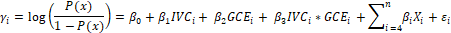 | IVC*GCE | 1,0376*** (0,0945) | 2,8224 | -0,5086*** (0,0554) | 0,6013 | |