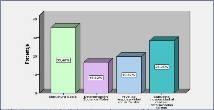 Esto se debe a que la estructura social en donde se ve al hombre como el proveedor de recursos y a la mujer como la encargada del hogar, se traslada al mercado de trabajo reflejado en una menor posibilidad de inserción laboral aún teniendo las mismas capacidades y cumpliendo los requisitos que requiere una determinada plaza de trabajo.
