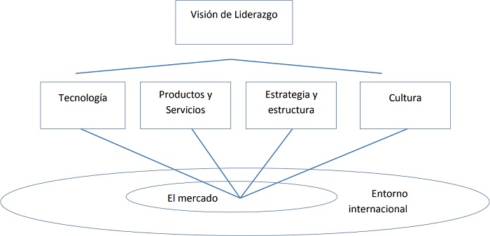 Para este estudio nos enfocaremos en las tipologías abordadas por McCann, J. (1991) y citado por Daft, R. (2007), quien indica que los directivos pueden enfocarse en cuatro tipologías dentro de las organizaciones para lograr una ventaja estratégica. Los cuatro tipos se muestran en la ilustración 2, como los productos y los servicios, la estrategia y la estructura, la cultura y la tecnología, que orientados bajo una visión de liderazgo, le permitirá a cada organización diseñar una configuración particular de cada uno de estos elementos y lograr un impacto satisfactorio en su desempeño. Como se puede apreciar el autor identifica a la estructura y cultura organizacional como elementos de cambio que proporciona diferenciación competitiva estratégica.