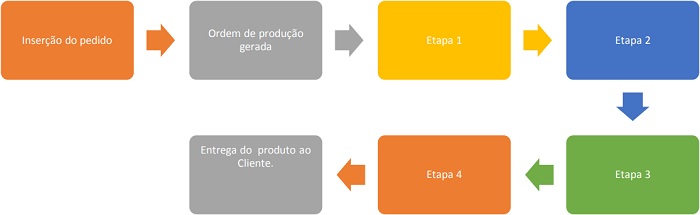 Em um sistema de produção, o fluxo dos materiais e recursos, quando acumulado na forma de estoques entre os processos por causa dos tempos de espera, pode se tornar recursos ociosos, sendo fonte de desperdício, principalmente em sistemas de produção empurrado. Dessa maneira, o sistema de produção puxado tem como principal objetivo reduzir estoques e evitar produções excessivas, pois a produção somente é iniciada após a inclusão de um pedido em cada etapa da produção, tal como se pode verificar na Figura 1 (VOTTO; FERNANDES, 2014).