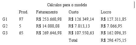 A modelagem aplicada observou o elemento a ser maximizado e as restrições impostas ao mesmo, ou seja, todos os elementos que podem ser limitantes ou pré-requisitados para a elaboração dos lotes indo de encontro à formulação matemática e ao modelo de gestão indicados por Lachtermacher (2004); Caddah (2004); Evangelista et al. (2013); Krause e Pessoa (2014).