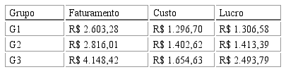 Após a organização dos dados obtidos na pesquisa de campo, o levantamento de custos e margens de ganho por grupo foi obtido conforme apresentado na Tabela 7.