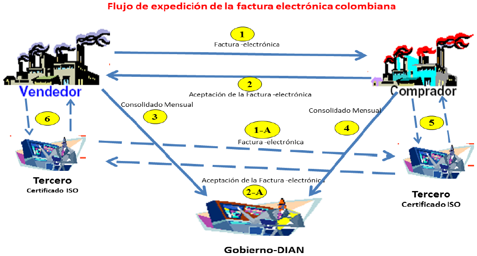 La empresa que expide la factura electrónica, en nombre propio o por intermediación de un tercero, generará un archivo electrónico que contendrá la información fiscal de la operación comercial. Este archivo se envía al comprador y periódicamente esta información se reporta a la Dirección de Impuestos y Aduanas Nacionales (DIAN).