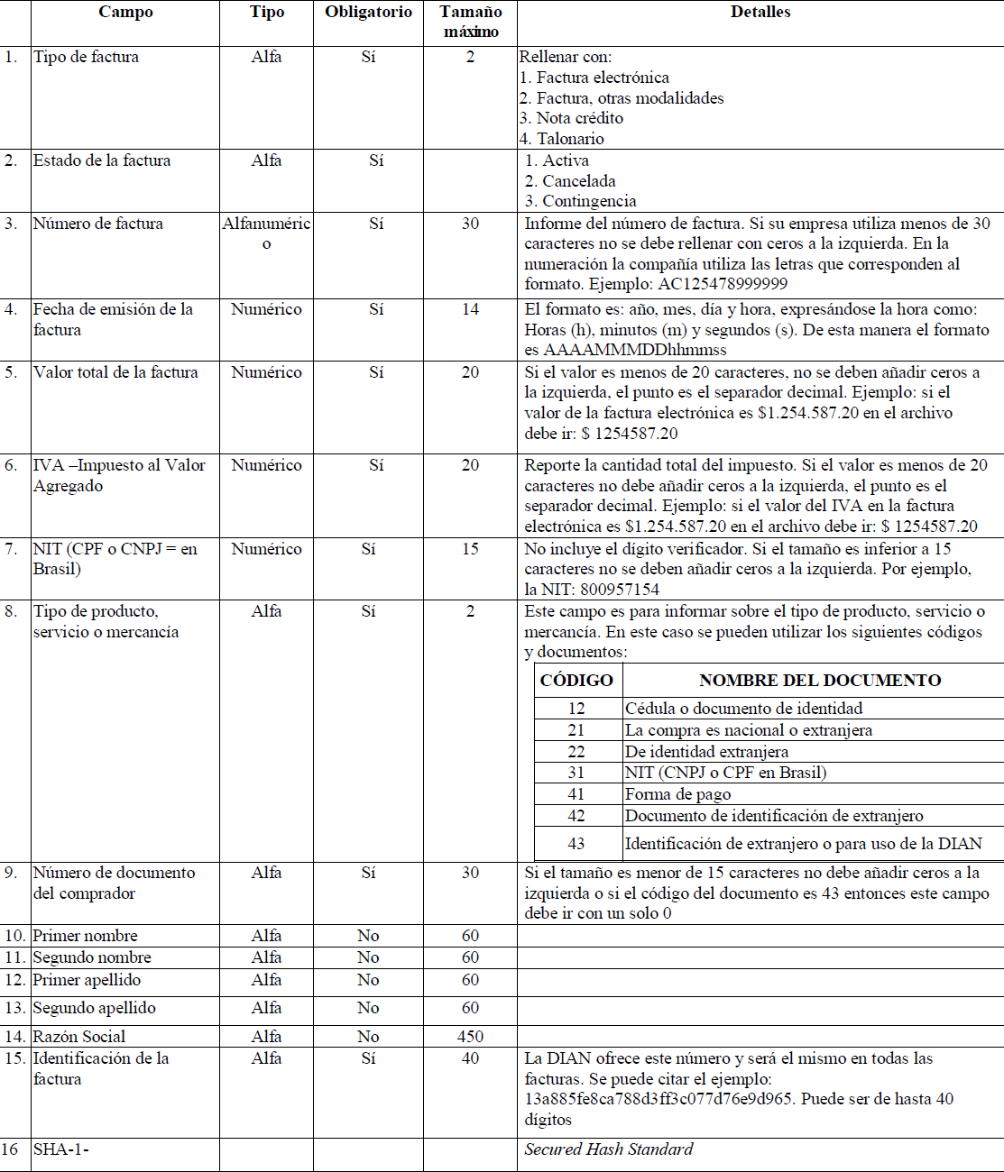En Brasil el documento que cumple esta función es la factura electrónica (ENF), establecida en el año 2005 (SILVA; CARVALHO; AROS, 2014). En Colombia el proceso tiene el mismo propósito: la identificación fiscal; y se denomina “factura de venta”.