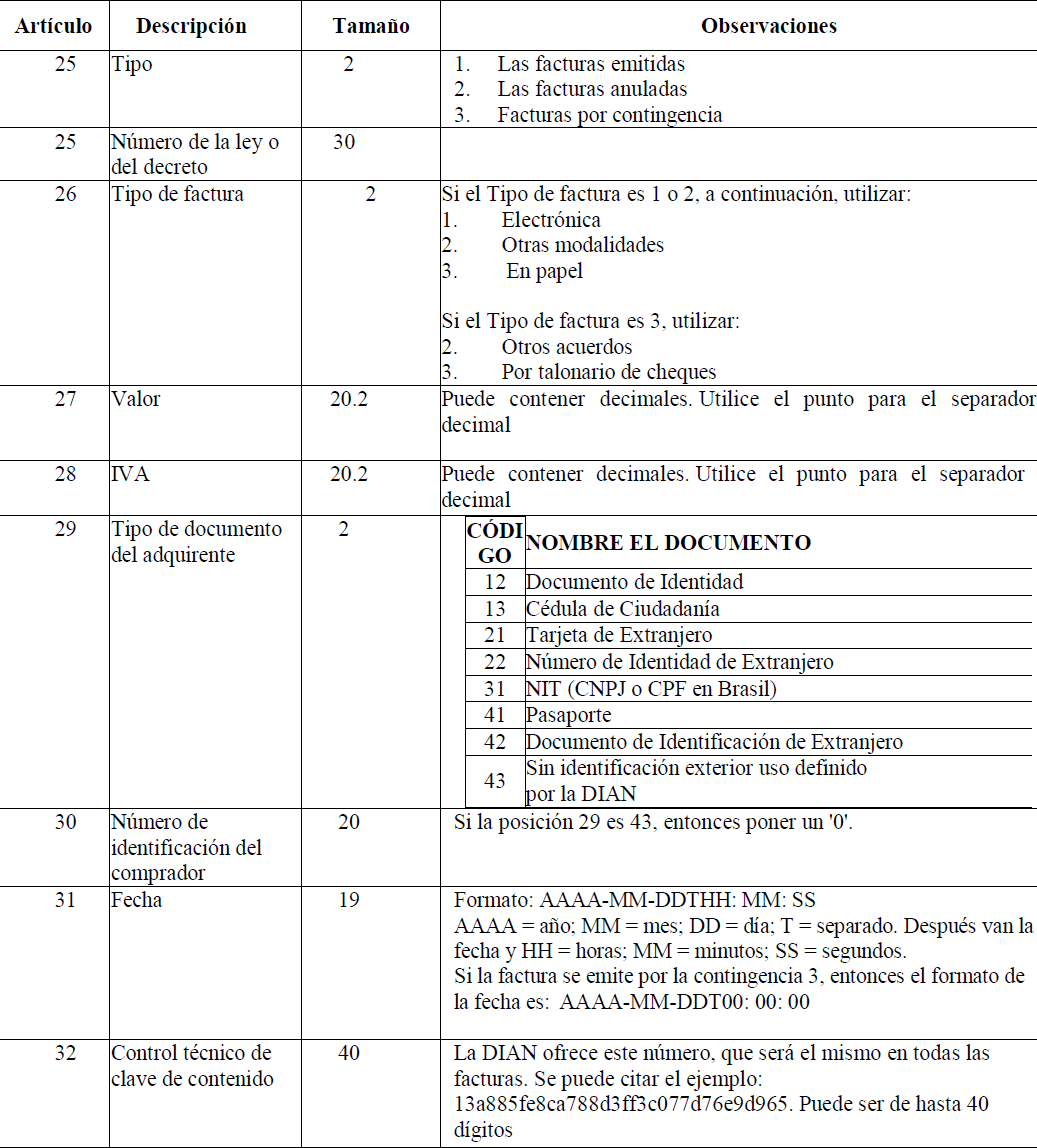 Se requiere que el destinatario de la factura proporcione la información solicitada por la DIAN, a saber (línea 4 de la tabla 3) (Colombia, Resolución 14465/2007):