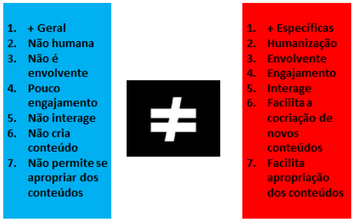Já as novas narrativas enfatizam o lado específico do fato narrado, são mais peculiares, humanizam o tema ou assunto tratado; são envolventes e provocam o engajamento, a interação, Facilitam a cocriação de novos conteúdos, assim como a apropriação dos mesmos.