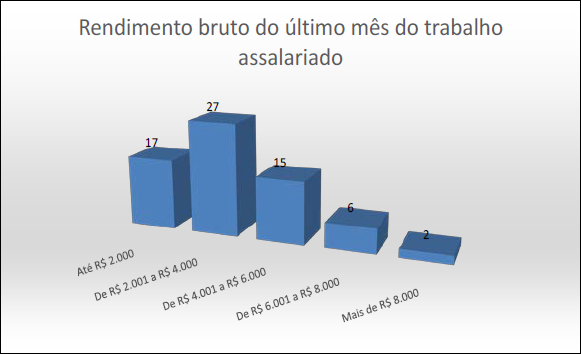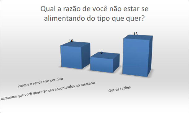 Embora uma grande parte dos entrevistados tenha afirmado que o alimento consumido era sempre do tipo que queriam, parcela significativa informou que nem sempre isso ocorria (ver Gráfico 6), o que se dava por outros motivos que não renda insuficiente ou pela dificuldade em encontrar os produtos no mercado (ver Gráfico 7). A maioria dos entrevistados morava com amigos (ver Gráfico 8) em imóvel alugado (ver Gráfico 9), e seu rendimento mensal bruto do último salário oscilava entre R$ 2,1 mil e R$ 4 mil (ver Gráfico 10).