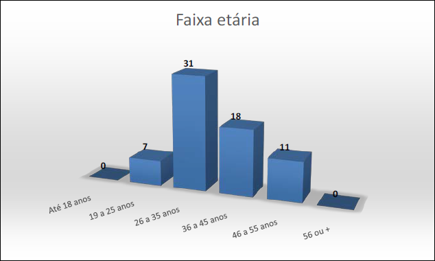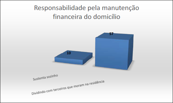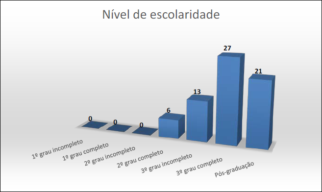Vinte e seis profissões foram identificadas no total da amostra, sendo que as mais comuns foram a de professor, ator e de profissionais liberais advogados, produtores e vendedores. A maioria dos entrevistados tinha entre 26 e 45 anos de idade (ver Gráfico 1), o terceiro grau completo ou pós-graduação (ver Gráfico 2) e dividia a responsabilidade pela manutenção financeira do domicílio com terceiros que moravam na residência (ver Gráfico 3).