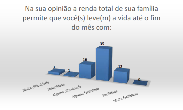 A maior parte dos entrevistados tinha renda familiar que lhes permitia fazer face às despesas mensais com alguma facilidade (ver Gráfico 4), e afirmou que a quantidade de alimento por eles consumido era sempre suficiente (ver Gráfico 5).