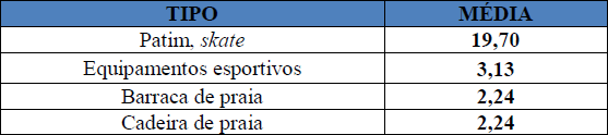 No que tange a artigos de papelaria, livros didáticos e não didáticos e assinatura de periódicos, o destaque ficou com o item outros (ver Tabela 9), enquanto os gastos com aquisição de brinquedos e material de recreação concentram-se na rubrica patim e skate (ver Tabela 10). O gasto na aquisição de artigos de armarinho, tecidos e roupas de mesa, de banho e de cama concentrou-se nos dois últimos (ver Tabela 11), enquanto os gastos com aquisição de utensílios avulsos e artigos de banheiro, de copa e de cozinha concentraram-se nos itens genericamente conhecidos como panelas (ver Tabela 12). Os entrevistados revelaram despender, no caso de outras aquisições que não as anteriormente mencionadas, em óculos escuros comuns (ver Tabela 13).
