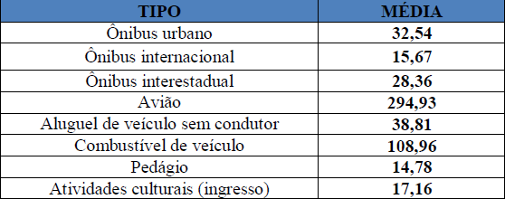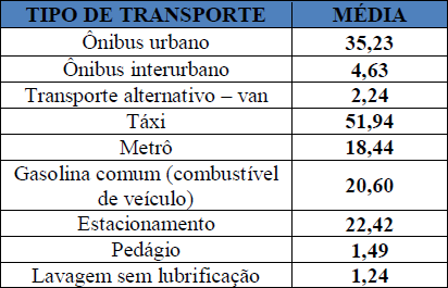 O gasto com serviços de comunicação por parte dos entrevistados referiu-se ao acesso à internet, cuja média mensal foi de R$ 22,75, enquanto os gastos médios com transportes coletivos e próprios eram destacados com taxi e com passagens em ônibus urbanos (ver Tabela 2). Os gastos com alimentação fora de casa são mais acentuados em restaurantes a peso; em segundo lugar, com muito menor expressão, vêm as despesas com consumo de cerveja (ver Tabela 3). Os gastos com a aquisição de artigos de fumo se concentram no consumo de cigarrilhas, cuja média mensal é próxima de R$ 40,00 (ver Tabela 4).