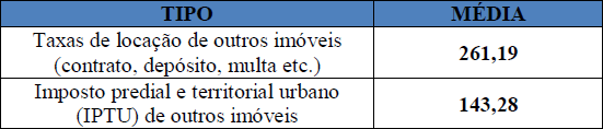 Os gastos com acessórios e manutenção de veículos concentraram-se nos itens câmara e pneu, e mão de obra para conserto (ver Tabela 16), enquanto os gastos com serviços bancários, de cartório, de advogado, de despachante e similares foram indicados com maior intensidade no caso dos encargos financeiros de cartão de crédito (ver Tabela 17). No que tange aos gastos com aquisições de joias, relógios, aparelhos e acessórios de telefonia celular, o destaque ficou com os aparelhos celulares (ver Tabela 18). Outros imóveis traziam despesas aos entrevistados no que tange a taxas de locação e ao imposto predial e territorial urbano (ver Tabela 19).