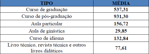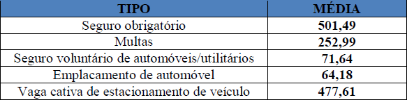 Contribuições, transferências e encargos financeiros traziam despesas aos entrevistados, principalmente no que diz respeito a pagamento de empréstimos (ver Tabela 20), ao mesmo tempo que gastos com cursos, livros didáticos, revistas técnicas e outros itens referentes à educação foram mais destacados no que diz respeito a cursos de pós-graduação (ver Tabela 21). O gasto dos entrevistados com despesas atinentes a veículo próprio seguro foi destacado no caso do seguro obrigatório (ver Tabela 22), assim como houve menções a gastos com a aquisição de automóvel utilitário nacional (ver Tabela 23).