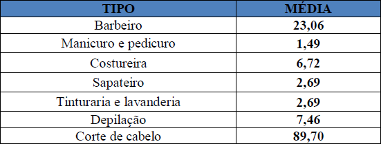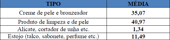 A aquisição de produtos farmacêuticos é mais destacada no caso de vitaminas, de produtos para cuidados bucais e dentais, e de preservativos e lubrificantes íntimos (ver Tabela 6), enquanto as aquisições de artigos de higiene pessoal são mais intensas no que tange a produtos de limpeza de pele (ver Tabela 7), e o serviço de cuidados pessoais mais destacado foi o corte de cabelo (ver Tabela 8).