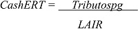 Em que os Tributospg representam as despesas com imposto de renda e contribuição social corrente, isto é, somente aquelas despesas que possuem contrapartida com os passivos registrados e pagos até o último dia do mês de março do ano subsequente, conforme legislação fiscal. E o LAIR é o resultado da empresa antes da incidência do imposto de renda e contribuição social.