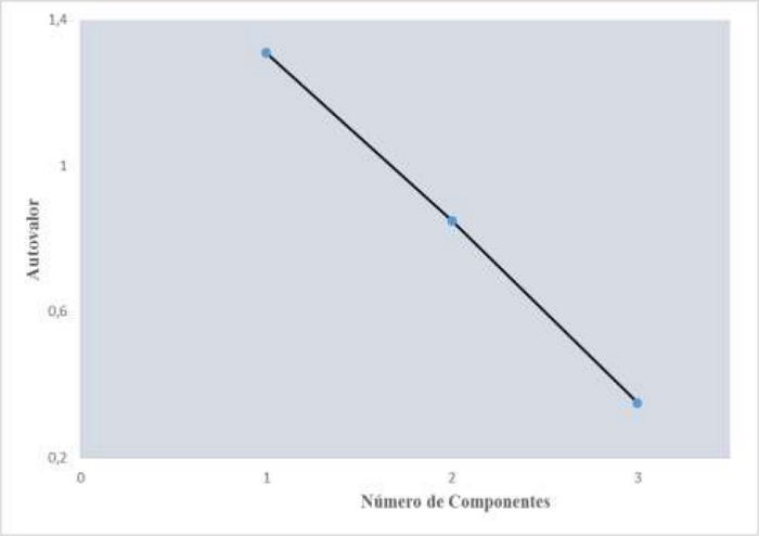 A análise indicou que dois componentes satisfaziam os critérios de autovalor de >1 e explicavam 43,39% da variância. Esta indicação foi confirmada pelo gráfico de escarpa (figura 5).