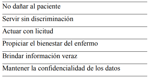 Siendo el derecho a la vida y el derecho a la salud, derechos inalienables, la deontología ha llevado a la medicina a estar al servicio del hombre, sin contradecir la realidad y sus progresos tecnológicos al unir el orden moral y el orden jurídico, con el fin de generar aportes significativos y positivizados por ser aplicables a todo un colectivo. En ese sentido, a manera de mandamientos se proponen los siguientes postulados: