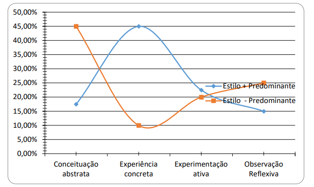 Após a obtenção dessas pontuações, subtraem-se os resultados encontrados dois a dois (CA - EC) e (EA - OR), assim identificando o estilo de aprendizagem predominante no sujeito que responde ao inventário (Dalpiás, 2017). Nessa pesquisa o aluno é evidenciado como ser aprendente, seguindo, portanto, as principais características de cada modo de aprendizagem na perspectiva do aluno, como segue: