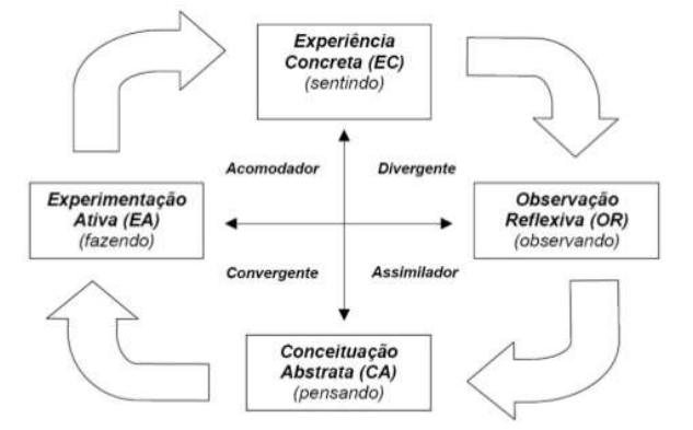 Aprender é um processo contínuo e ascendente, impulsionado pela experiência. Nessa teoria, percebe-se que a ênfase no experiencial diferencia seu enfoque de outras teorias cognitivas do processo de aprendizagem, ainda que, para chegar às suas conclusões, tenha se baseado em algumas dessas teorias. Dessa relação entre aprender, conhecer e desenvolver, o ciclo de aprendizagem relaciona quatro modelos adaptativos de aprendizagem. São eles: (1) Experiência Concreta (agir), (2) Observação Reflexiva (refletir), (3) Conceitualização Abstrata (conceitualizar) e (4) Experimentação Ativa (aplicar).