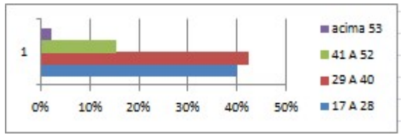 Com base nos dados levantados, foi possível identificar que 40% da amostra escolhida é composta por alunos de faixa etária de 17 a 28 anos; 42% é composto por alunos de faixa etária de 29 a 40 anos; 16% é composto por alunos de faixa etária de 41 a 52 anos e apenas 2% da amostra é composto por alunos com faixa etária acima de 53 anos, caracterizando uma maior incidência de jovens entre os entrevistados.
