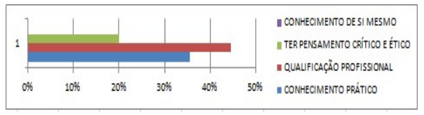 Com relação ao questionamento sobre o que é necessário para formação de um bom contador (Figura 5), 36% responderam que ter conhecimento prático é fundamental; a maiorias dos respondentes, por sua vez, ou seja 44% da amostra, acreditam que a qualificação profissional é um fator importante para se tornar um bom contador; 20% acham necessário ter pensamento crítico e ético e nenhum considerou que ter conhecimento de si mesmo era algo necessário para ser um bom contador.