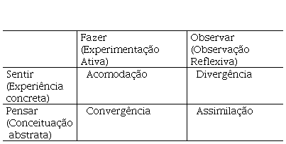 A Teoria de Aprendizagem Experimental de Kolb concebe o aprendizado como o processo pelo qual ocorre o desenvolvimento do indivíduo. Essa relação entre aprendizado e desenvolvimento difere de algumas concepções tradicionais, nas quais os dois processos são colocados como relativamente independentes, sugerindo que o aprendizado seja um processo subordinado, mas não envolvido ativamente no desenvolvimento do indivíduo: para aprender, o indivíduo utiliza-se das conquistas que o seu desenvolvimento proporcionou, mas este aprendizado não muda o curso do desenvolvimento em si. Tem-se na Tabela 3 o Inventário de Estilo de Aprendizagem com bases nas diretrizes estabelecidas por Kolb.