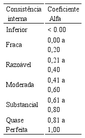 Landis e Koch (1977) apresentam uma categorização do coeficiente α, como um benchmark, para indicar o nível da consistência interna das respostas ao questionário, conforme Tabela 2.
