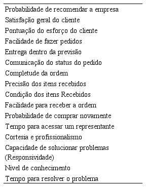 Conforme referencial teórico, foram destacadas quatro variáveis para análise do efeito da implementação dos sistemas ERP e CRM na satisfação do cliente, conforme Tabela 3 (Ata & Toker, 2012; Beheshti & Beheshti, 2010; Mithas, Krishnan, & Fornell, 2005; Soltani & Navimipour, 2016; Tseng & Wu, 2014; Umble, Haft, & Uumble, 2003).