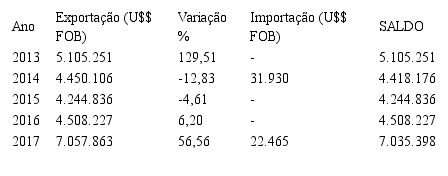 O beneficiamento local tem aumentado no decorrer dos anos, o que traz benefícios para o comércio local. Com relação à arrecadação de Ametista do Sul (U$$), verificada na Tabela 2, que no ano de 2017 houve um aumento bem significativo nos valores oriundos das exportações, o que representa um retorno econômico importante.