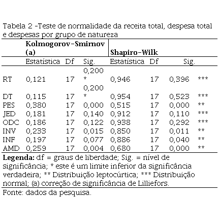 A Tabela 2 apresenta os resultados dos testes de normalidade das variáveis constantes da Tabela 1.