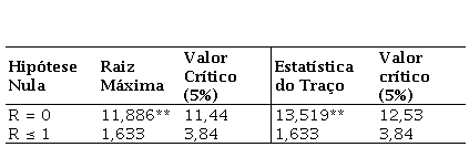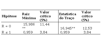 Enquanto os autovalores defasados e os defasados das variáveis endógenas indicam a relação de curto prazo, os valores de cointegração indicam a relação de longo prazo.