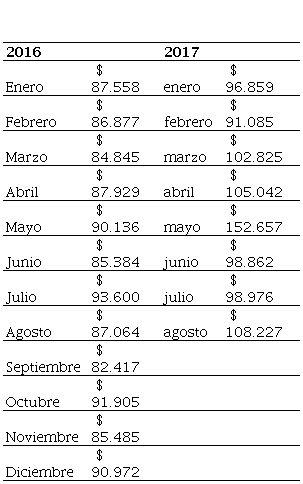 El indicador aumenta si los ingresos crecen más que el gasto en agua, o si se logra bajar el pago por concepto de acueducto o alcantarillado manteniendo los mismos ingresos. La tabla 2 contiene los datos de la Cooperativa para el periodo comprendido entre enero de 2016 y agosto de 2017.