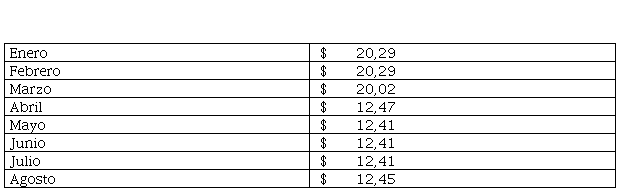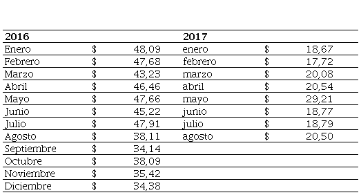Al momento de realizar el análisis se cuenta con datos para el periodo enero-agosto de 2017. En este periodo se observa una fuerte caída del 40% en este indicador; dicho descenso se explica por el aumento del 63% en la tarifa pagada por concepto de aseo.