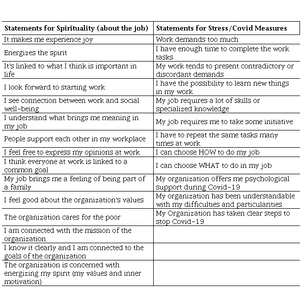 Keywords: Covid-19, pandemic, organizational spirituality, professional stress.