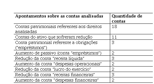 Algumas contas foram escolhidas para a análise quantitativa, em vista de que analisar todas as contas implicaria somente uma leitura dos demonstrativos. Nesse sentido, alguns critérios foram estabelecidos: