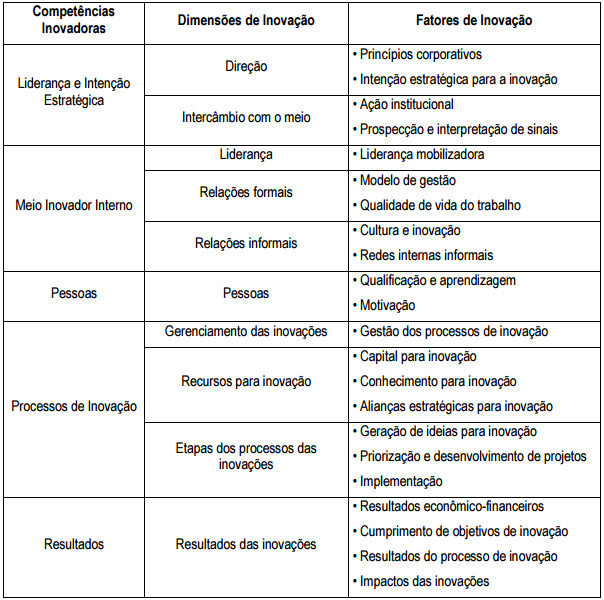 COMPETENCIES OF THE INNOVATIVE ORGANIZATION: A STUDY OF BUSINESSES OF THE INSTITUTO PAULISTA DE EXCELÊNCIA DA GESTÃO AND FUNDAÇÃO NACIONAL DA QUALIDADE
